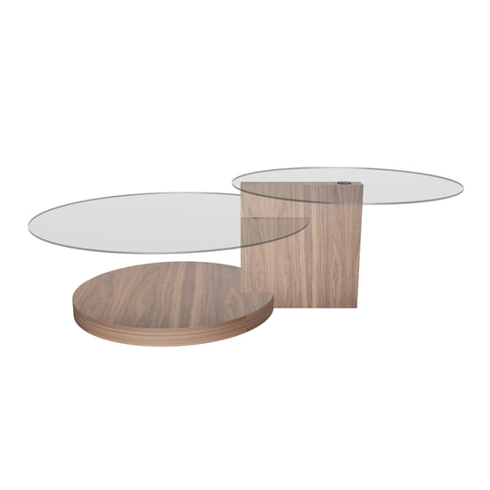 De bladen zijn van gehard glas. Het frame is van walnoot. De tafel wordt met zorg geproduceerd met premium materialen. Zo is het een duurzame tafel die lang mee gaat.